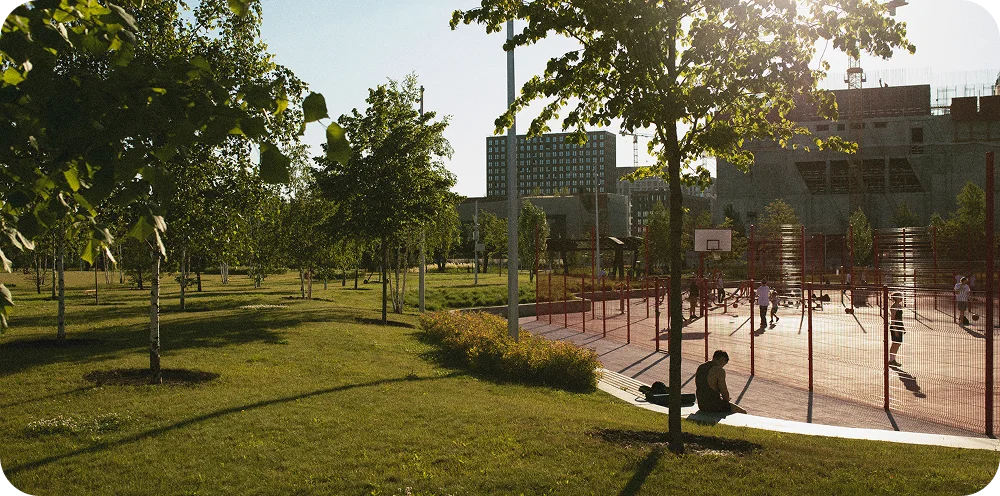 Мы создаём дворовые пространства «под ключ»: детские площадки, спортивные зоны, покрытия, малые архитектурные формы и озеленение.