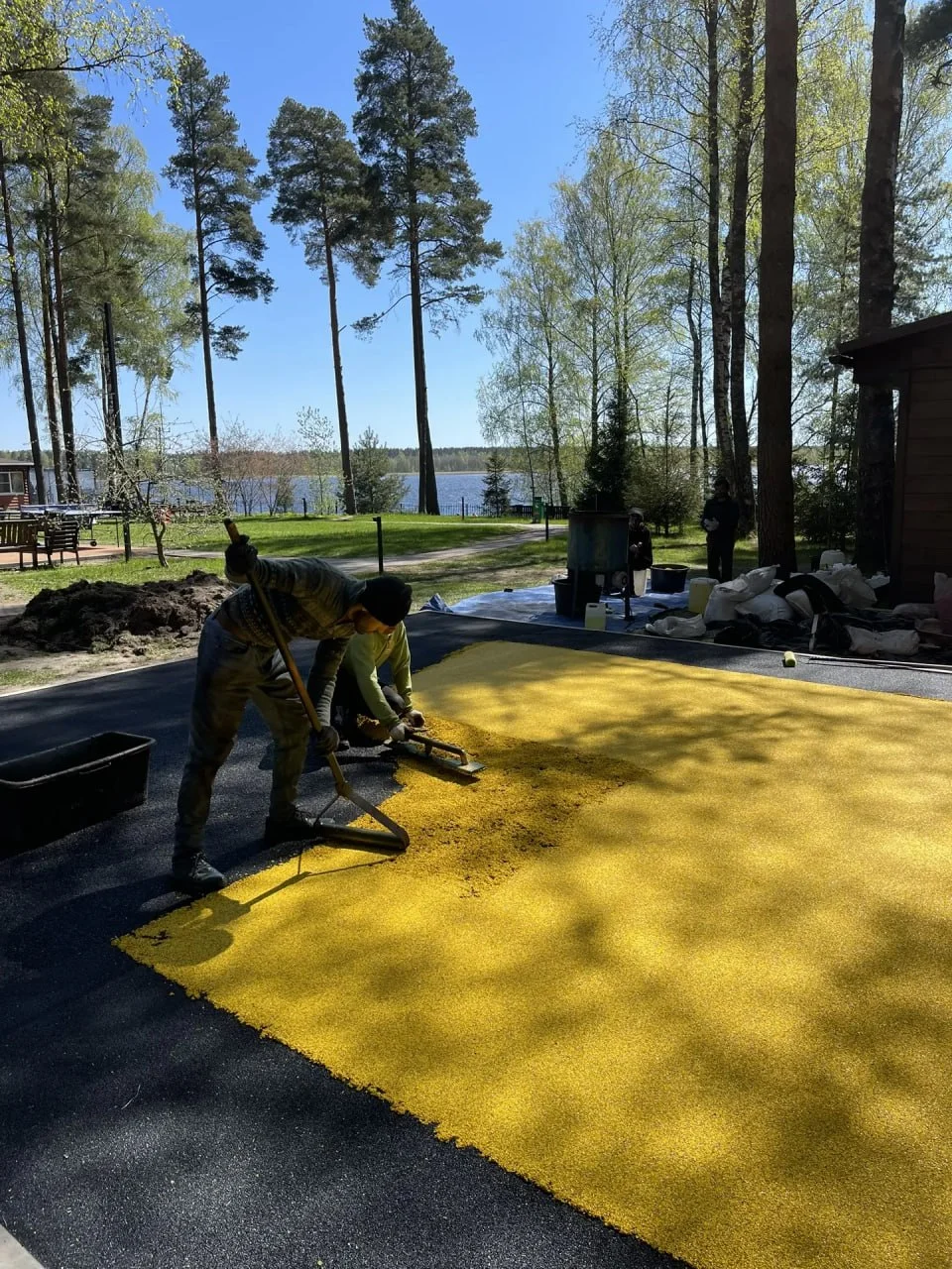 Площадка для настольного тенниса «под ключ» Комплекс работ: подготовка основания, устройство двухслойного покрытия из EPDM-крошки с краплением (10+10 мм)
